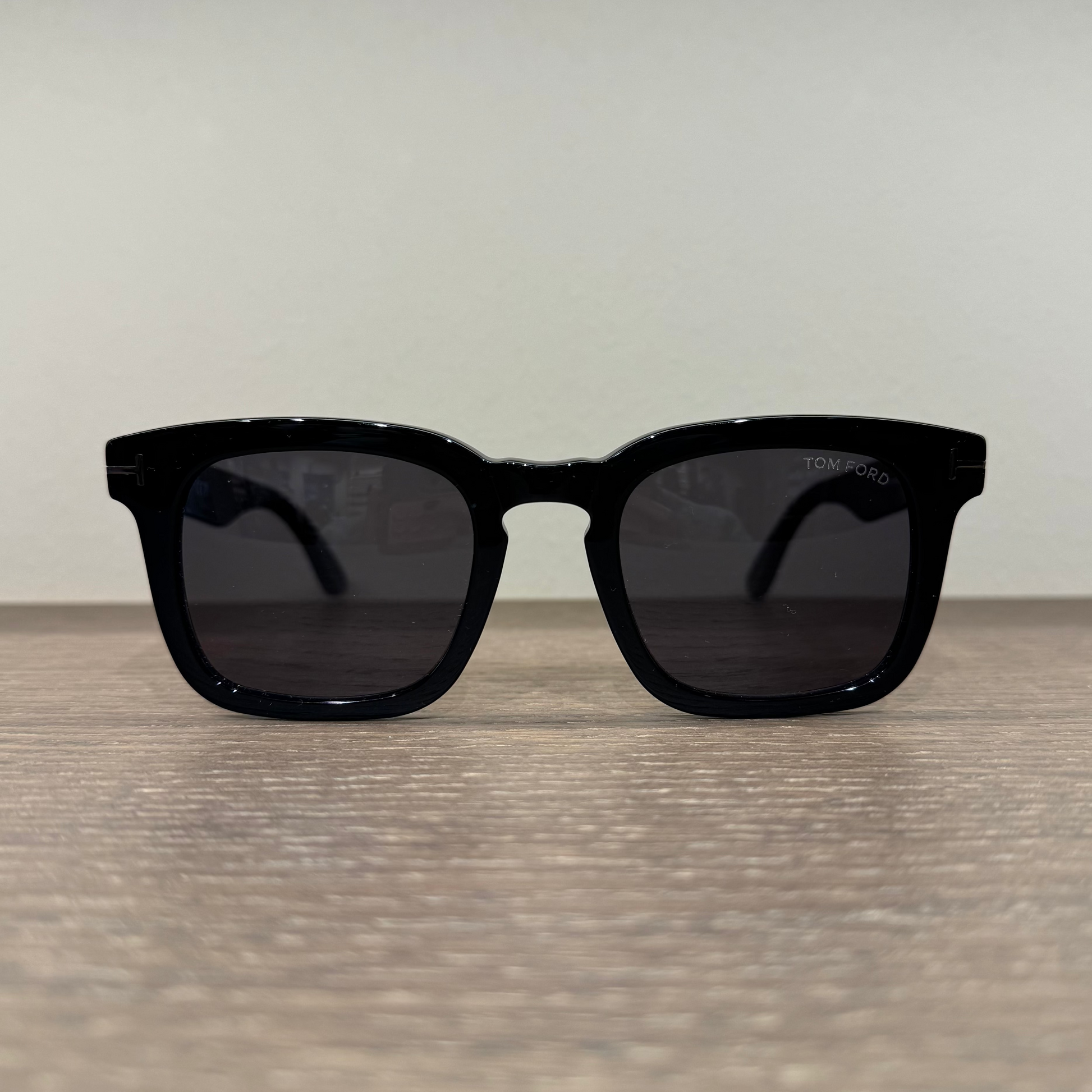 Occhiali da sole con montatura in celluloide di colore nero, logo canna di fucile e lenti grigio con trattamento antiriflesso interno.